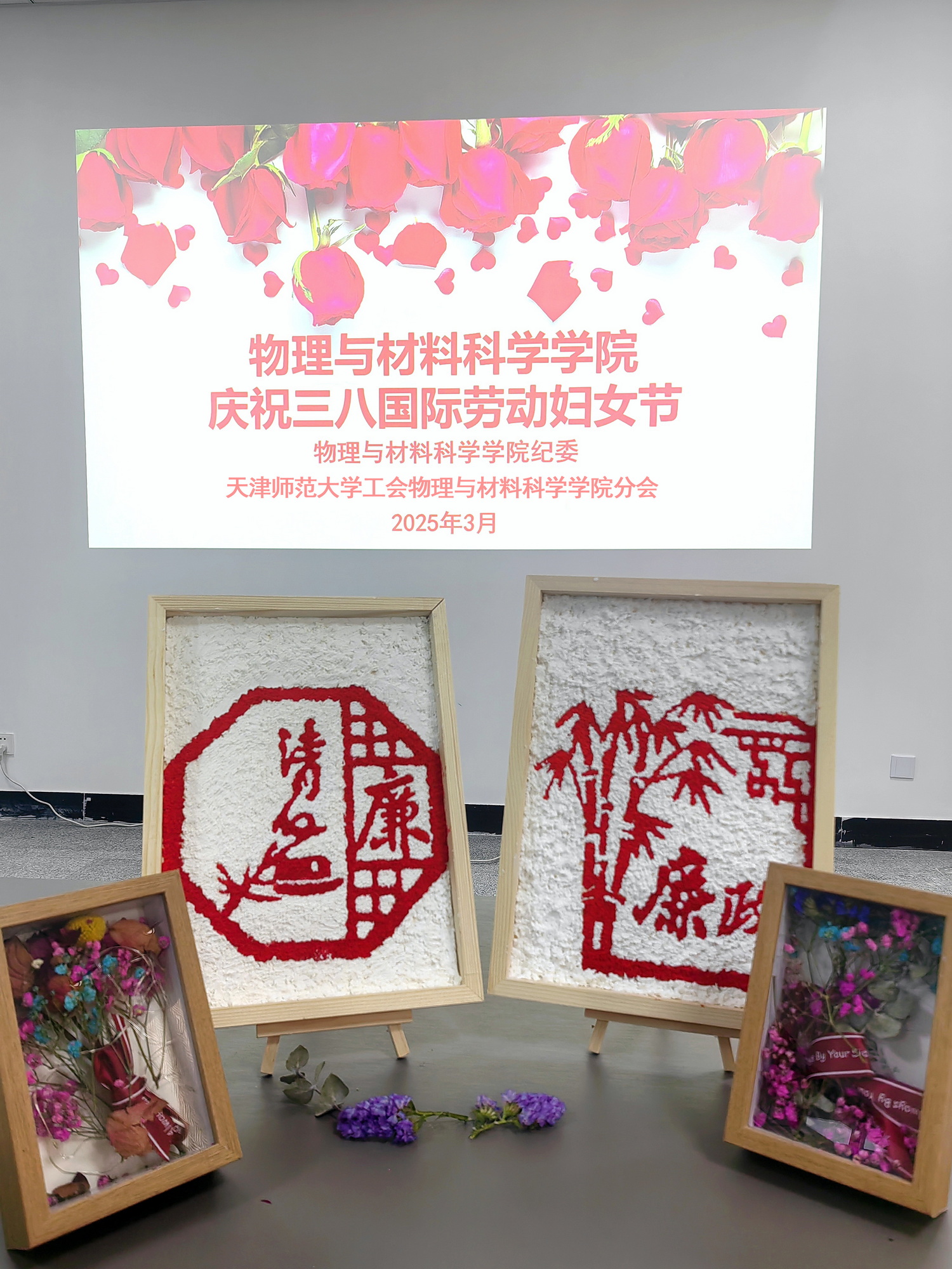 本站讯(通讯员 郝健强)在第115个“三八”国际劳动妇女节来临之际,为深入贯彻清正廉洁、坚守初心的精神,营造风清气正的学院环境,丰富学院女教职工精神生活,3月6日中午,物理与材料科学学院纪委联合学院工会分会共同开展“展巾帼风采,沐廉政清风”国际劳动妇女节主题活动,捻纸为画,共庆女神佳节,润物无声,同沐廉政清风。学院领导班子及全体女教职工齐聚一堂,以“纸浆画”“干花画”为载体,将廉政文化融入艺术创作,在指尖流转间涵养清风正气,共度别具意义的节日时光。