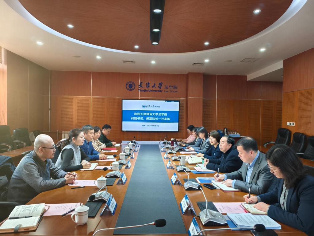 本站讯(通讯员 侯慧秀)12月3日,贝博法学院领导班子一行前往天津大学法学院交流座谈。天津大学法学院院长孙佑海,党委书记管虹,党委副书记杨漫路,副院长杨健、于艳春、杨雅婷,贝博法学院党委书记何璐,党委副书记、院长郝磊,副院长郭明龙、曲佳丽等参加座谈。