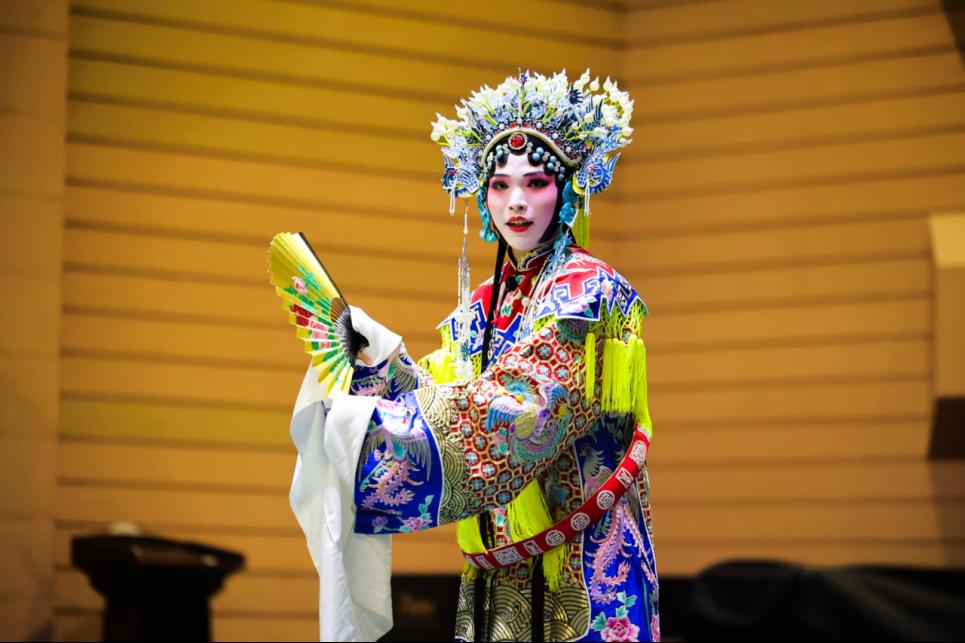 锣鼓声起,京剧、河北梆子、黄梅戏、昆曲、岔曲、相声等优秀剧目悉数登场,观众们在精彩纷呈的戏曲世界中,感受到国粹京剧的博大精深,饱览了地方戏曲的独特魅力。在京剧短打武戏剧目《恶虎村》中,国韵京剧社社员温锦杉灵活运用“飞天十三响”“飞脚”“踢大带”等技巧表现了人物夜入恶虎村的场面,身段气质极具张力;在京剧《空城计》选段《我正在城楼观山景》中,社员李沛钊饰演的诸葛孔明坐镇空城、气定神闲,带领观众们走进了三国这个充满智慧与谋略的世界;在昆曲《牡丹亭》中,社员李昕馨通过《游园》中的一句“不到园林,怎知春色如许”唱出了杜丽娘对爱情的憧憬和向往,唱腔婉转细腻,表演优美动人;在地方戏优秀剧目展演中,黄梅戏淳朴流畅、河北梆子豪放粗犷……两个小时的曲艺盛宴让传统文化走进观众心中,撬动了隐藏在年轻一代心中最深刻的文化家国情怀。