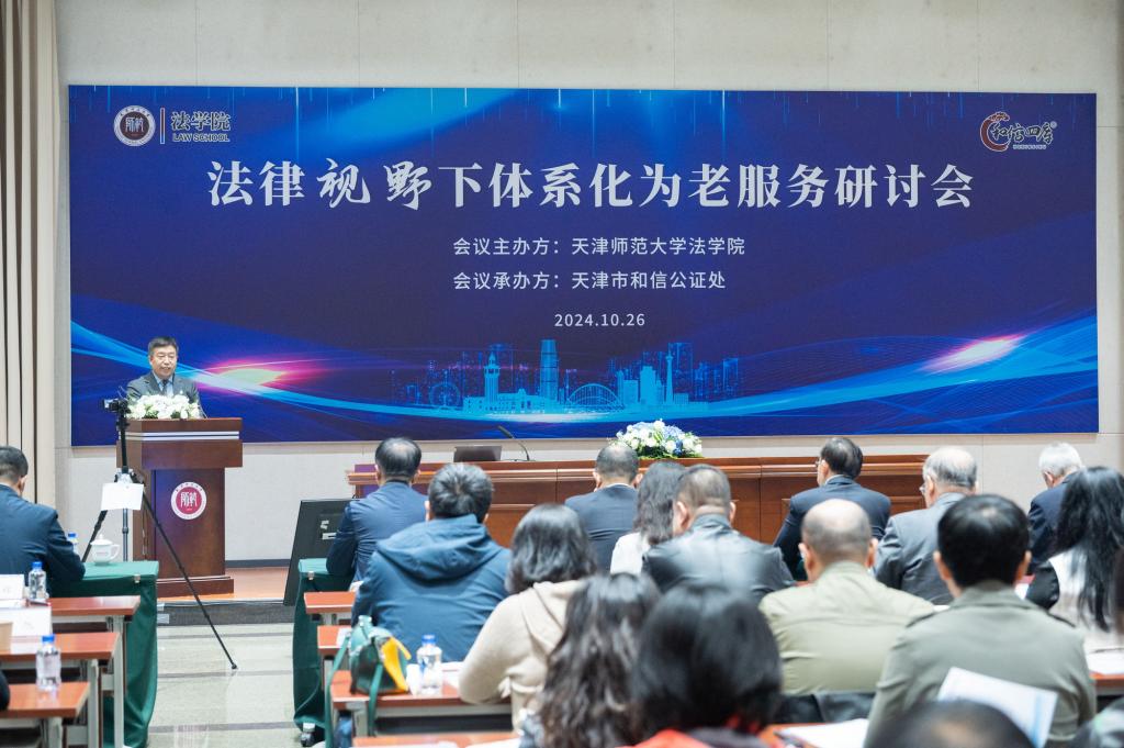 本站讯(通讯员 侯慧秀)10月26日,由贝博法学院主办,天津市和信公证处承办的“法律视野下体系化为老服务研讨会”在学校会议中心举行。天津市侨联党组成员、副主席杨昆、陈敬,天津市公证行业党工委副书记、天津市公证协会会长单彬,贝博党委常委、统战部部长张向东,天津市公证行业党工委副书记、天津市司法局公共法律服务二处处长吴香湘,天津市民政局老龄处处长赵治国,天津市侨联秘书长、经济科技保障部部长李卫新,天津市河西区司法局党委书记、局长赵金力,天津市河东区人民法院党组成员、副院长钱天彤,贝博法学院院长郝磊,天津市侨联法律顾问委员会主任王世清以及来自实务界的嘉宾150余人参加会议。会议由法学院副院长郭明龙教授主持。