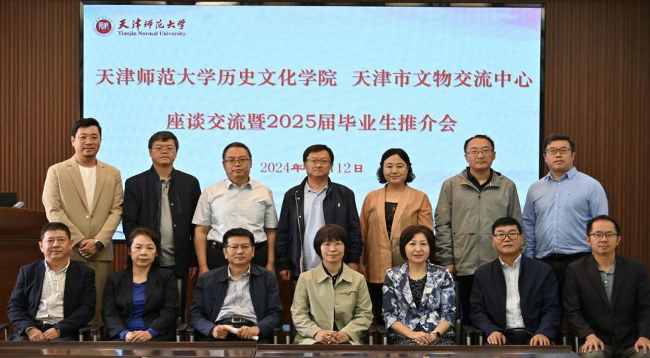 本站讯(通讯员 周二保)近日,历史文化学院与天津市文物交流中心举办座谈交流会暨2025届毕业生推介会。历史文化学院全体领导班子成员、天津市文物交流中心党总支书记兼主任王青及有关负责同志参加会议。