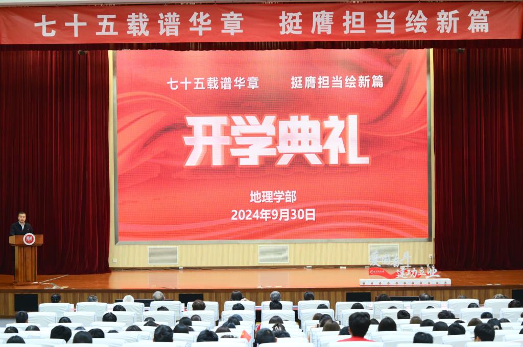 本站讯(通讯员 刘琳)9月30日,在全国上下庆祝新中国成立75周年的欢腾景象中,艾弗森贝博ballbet官网地理学部隆重举行2024级新生开学典礼。学部领导班子全体成员、教师代表、辅导员代表和2024级全体新生参加。此次开学典礼不仅是新的开启,更是对爱国主义教育和中华民族共同体意识的一次深刻诠释。