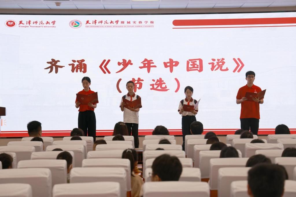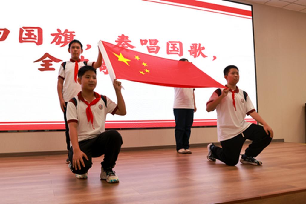 “美哉我少年中国,与天不老!壮哉我中国少年,与国无疆!”贝博学生党员骨干“旗帜班”学员和附属实验学校七年级学生代表齐诵《少年中国说》(节选),信念坚定、字句铿锵、慷慨激昂,展现报国壮志,抒发爱国深情。