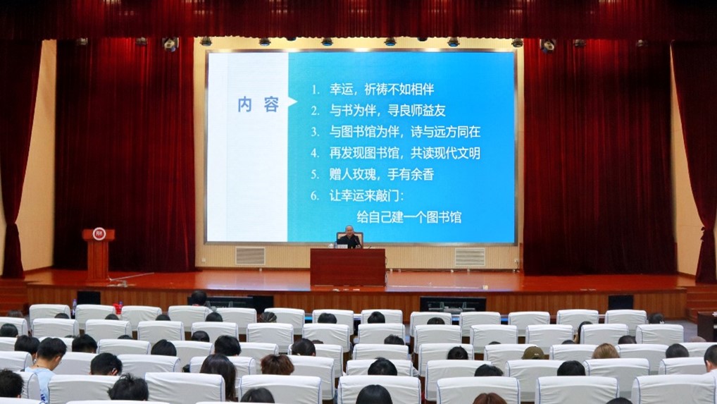 讲座中,李东来结合自身成长经历介绍了自己与图书馆的深切联系和紧密链接,并围绕“幸运,祈祷不如相伴”“与书为伴,寻良师益友”“与图书馆为伴,诗与远方同在”“再发现图书馆,共读现代文明”“赠人玫瑰,手有余香”“让幸运来敲门:给自己建一个图书馆”等六个方面动情分享。他指出,图书馆承担着人类文明“汇聚者、传播者和建设者”的三重角色,不仅仅汇聚图书文献,还保存影视等音视频资料,并在建筑标识、普及程度、设置专题与提升服务等方面时刻体现着阅读社会的中坚和保障。他深情寄语广大青年学子,与书为伴,热爱阅读、享受阅读、终身阅读,涵养高尚品格,蓄满奋斗能量,找到属于自己的个人价值和人生幸运。