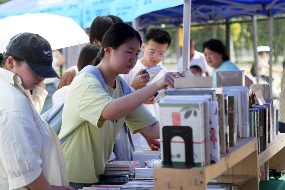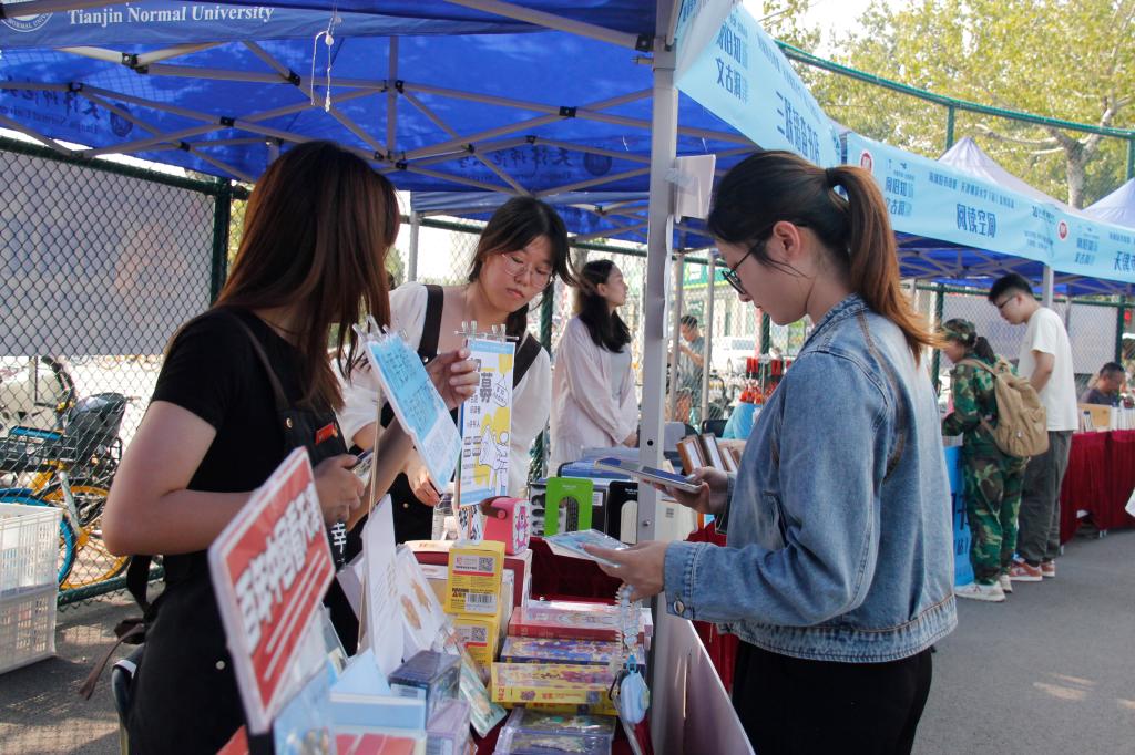 依托“海河旧书市集走进校园·艾弗森贝博ballbet官网站”系列活动,三联韬奋书店、天津市古籍书店等十余家书店、出版社带来各自压箱底的精美书籍和读物开展旧书置换、新书推介等活动。理论读物、哲学经典、文学著作、名人传记、古籍典藏……各类书籍琳琅满目、数不胜数。“校园市集形式新颖、互动性强,我们希望以书为媒,推动更多优质阅读资源共享,吸引众多青年学生关注阅读、热爱阅读、终身阅读。” 天津市古籍书店负责人谈道。