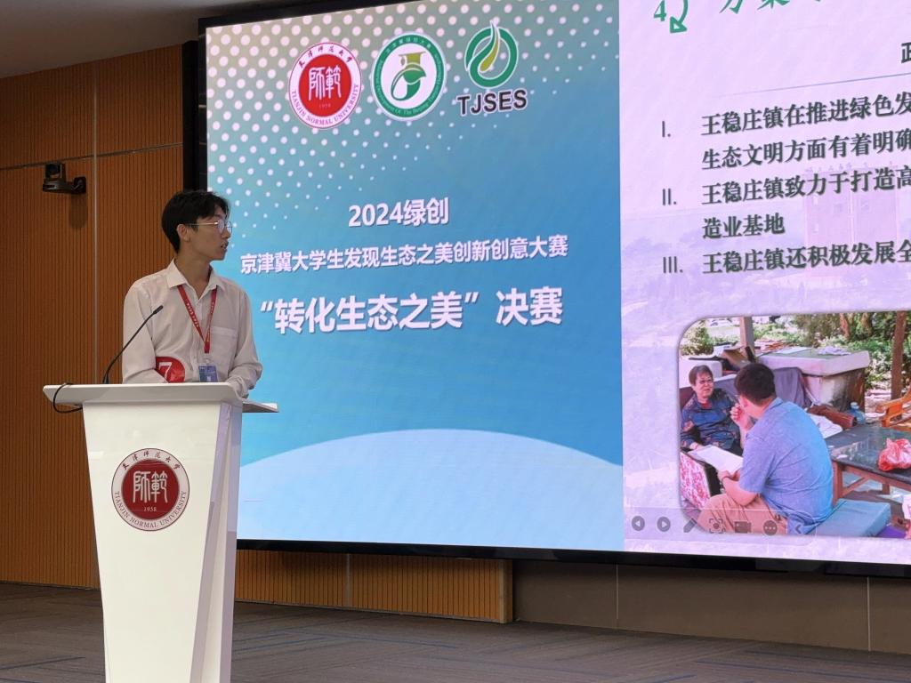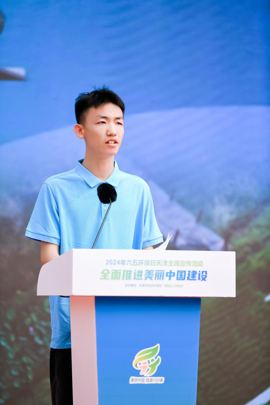 刘仁健同学结合参赛经验和求学经历,真挚地表达了对天津这座求学城市的深深热爱。他表示,团队会努力将获奖成果和当地实际相结合,将绿色生产力融入美丽乡村建设,更好的服务“两山”理论的实践转化,为美丽中国建设贡献青春力量。
