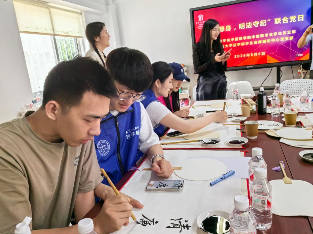天津美术学院中国画学院研究生准备了毛笔、宣纸、颜料等材料,指导大家在扇面上手绘荷花、竹子、兰花等代表清正廉洁的植物,书写隶、楷、行等多种字体。活动将廉洁教育与中华优秀传统文化完美结合,现场墨香四溢,气氛热烈,在欢声笑语间,廉洁自律意识深入人心。