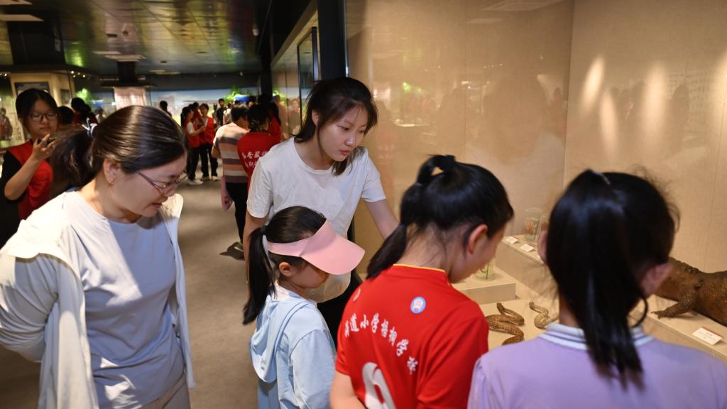 副院长闫春财介绍了学院生态记忆馆的建设及发展历程,他表示,生态记忆馆充分发挥科普教育基地作用,面向中小学生开放并开展科普活动。展馆融合生物标本展示与生物文创体验的多元化功能,共收藏2000余件生物展品,涵盖40余个分类单元,成为向师生及公众展示生态多样性、探索生命科学奥秘的重要科普平台。他希望参加活动的家长和小朋友们都能感受到遇见生命的乐趣,感受大自然独特的魅力。