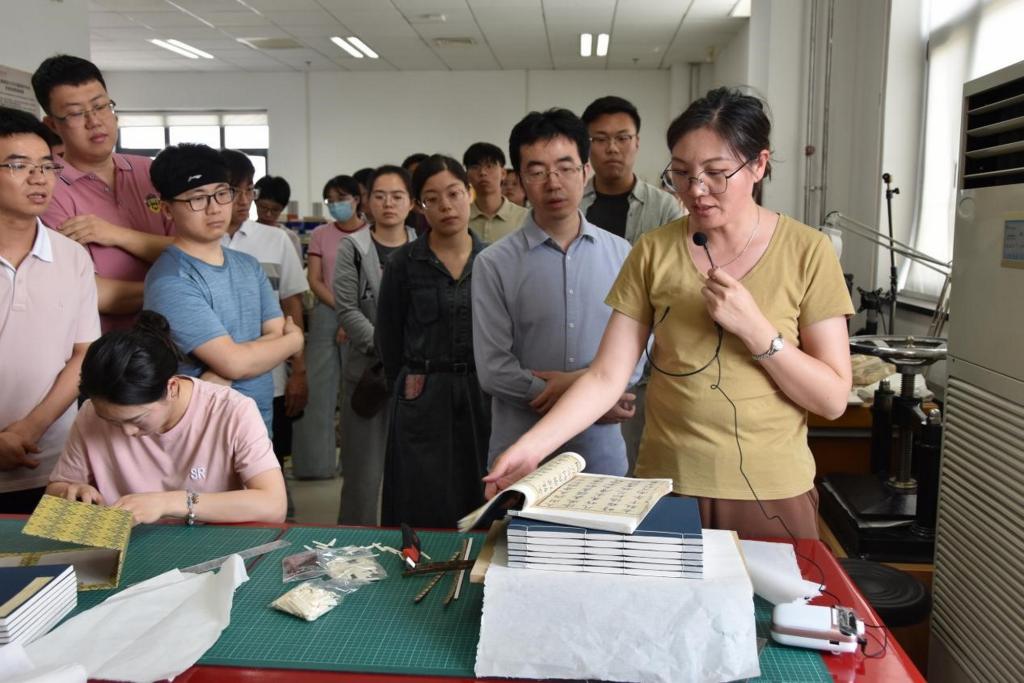 活动伊始,新入职教职工们怀着对知识的渴望和对历史的敬畏,踏入了古籍保护研究院。跟随付莉、牛甲芝、杨鹏三位老师的介绍,他们深入了解了贝博古保院的发展历史,深刻感悟古籍保护事业在延续历史脉搏、传承中华优秀传统文化中所体现出的工匠精神。随后,校歌学唱环节将活动推向了高潮,张增赋老师以精湛的钢琴技艺和专业的领唱技巧,引领新教师们沉浸在厚重、激昂、振奋的校歌之中。大家热情洋溢,全身心投入,《桃李争妍》的旋律在图书馆上空悠扬回荡。