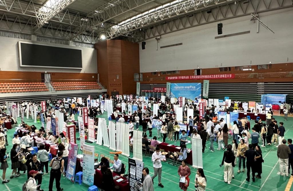 本次招聘会邀请南开翔宇学校、中国水利水电第十二工程有限公司等近150家用人单位,提供就业岗位4600个,其中中学教师、专业课讲师等师范类岗位2450个,翻译、会计等综合类岗位2150个,岗位与学校专业设置深度契合,精准匹配毕业生求职需求。除现场招聘外,同步设置直播带岗、企业推介等专区。在直播带岗专区,天津市志鼎培训学校有限公司、天津少年得到科技有限公司等企业走进直播间,向毕业生推介岗位,吸引1.39万人次在线观看交流。在企业宣介专区,保定市同济中学,邯郸经济技术开发区卓越中学、北京市朝阳区金师汇教育培训学校等13个学校负责人走上讲台,对院校文化、薪资待遇、发展前景等进行详细解读,256名毕业生达成初步意向。招聘活动现场,人头攒动、热闹非凡,同学们纷纷表示,“这次招聘会都是优质企业,提供的岗位与我们所学专业很贴近,极大拓宽了我们就业的选择范围”。据统计,本次招聘会共吸引3000余名毕业生参加,初步达成就业意向632人。