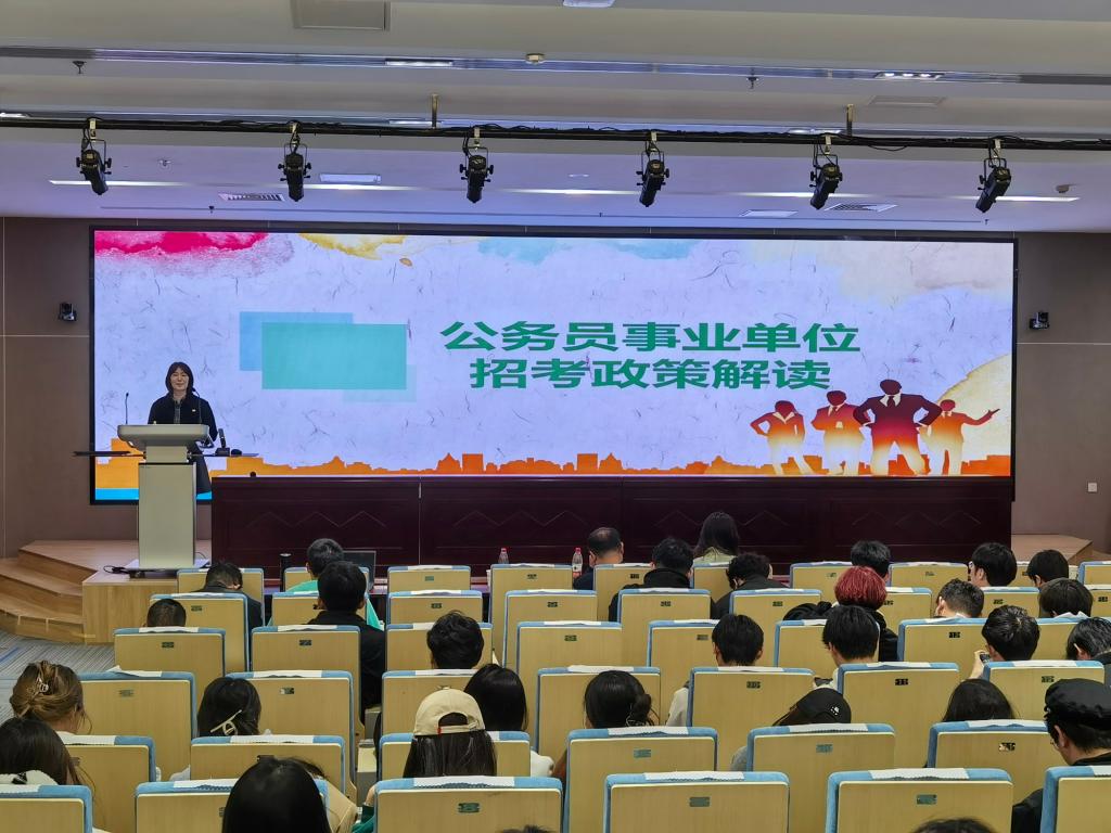 在就业政策宣讲会上,河东区人力资源和社会保障局副局长尚琳、河东区公共就业(人才)服务中心部长孙轶恺、中天人力中天人力毕业生服务部陶红辉、河东区公共就业(人才)服务中心副部长蔡玉欣分别就公务员事业单位招考和岗位选择、高校毕业生就业见习、毕业生档案、毕业生创业扶持等内容进行解读。来自数学科学学院、新闻传播学院、文学院的在校生共计200余人聆听宣讲会。