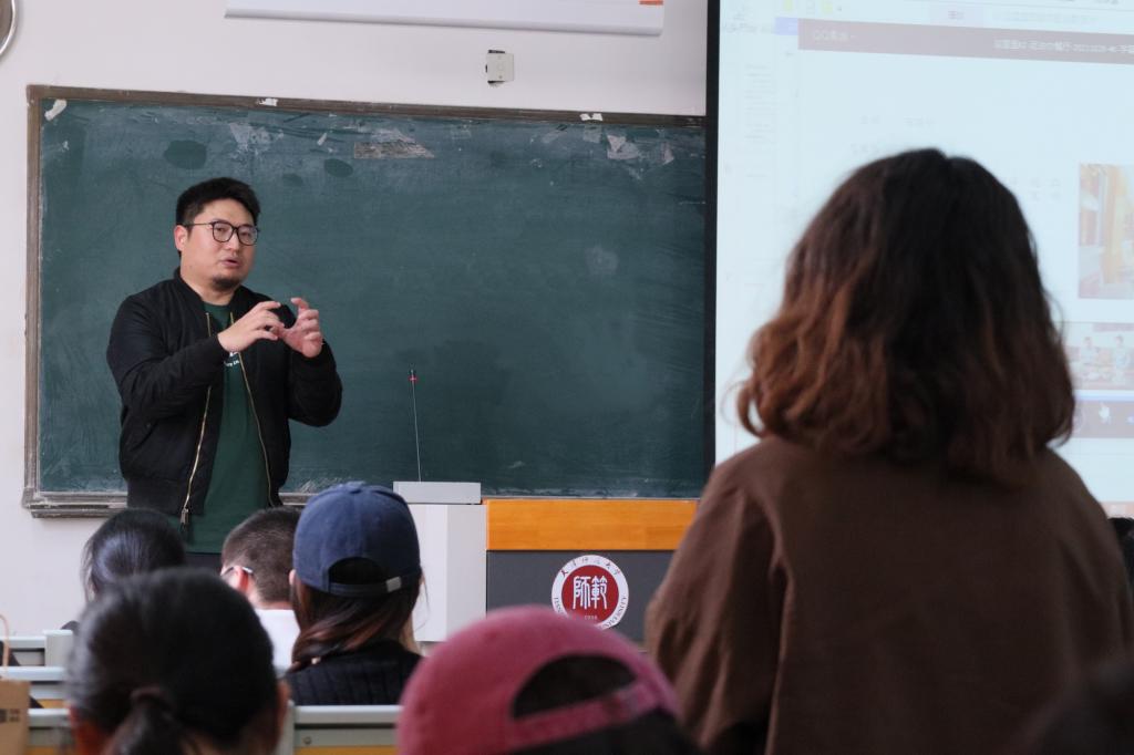讲座伊始,王巽导演简要介绍了纪录片《这里是西藏》的创作背景,并围绕外宣、纪录片以及制作周期这三个角度,以专业视角,逐一举例分析了创作策略及表达手法。王巽导演谈到,在策划初期,团队共同商讨,起草构建拍摄框架,预备多选题方案。展示全面立体真实的中国是本次纪录片拍摄的重点与最终目的,因此,创作团队注重软性传播效能,以“亲身体验”为影片特色,以六名外籍记者的“西藏Vlog”为呈现形式,创作了甜茶馆、尼泊尔餐厅等小切口选题的纪录片。他特别提醒同学们国际传播代表中国声音,需要严谨慎重。