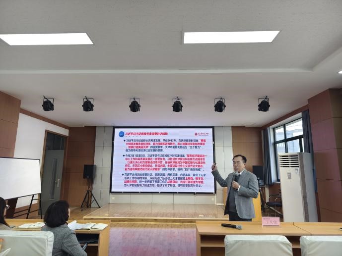 科学技术处处长王凡俊带领与会人员深入学习了习近平总书记视察天津重要讲话精神,并结合学校2024年科研工作规划,从优化科研布局,强化基础研究、搭建科技平台,催生创新成果、完善渠道体系,加速成果落地、改进管理机制,营造创新生态、深度参与天开园建设,高标准建设大学科技园等五个方面对“四个善作善成”重要要求进行了深入解读。王凡俊还以学院在天津市重点实验室申报、天开园项目入驻取得的成绩为案例,鼓励老师们在推进产教融合、提高科研成果产出上搭建平台、做好支撑、提振信心。王凡俊表示,学院要立足专业特点,发挥专业专长,探索跨学科深度交流路径,在推动加强大数据、物联网、工业互联网等数字技术融合应用、推动新一代信息技术发展上贡献应有之力,积极为发展新质生产力蓄势赋能。