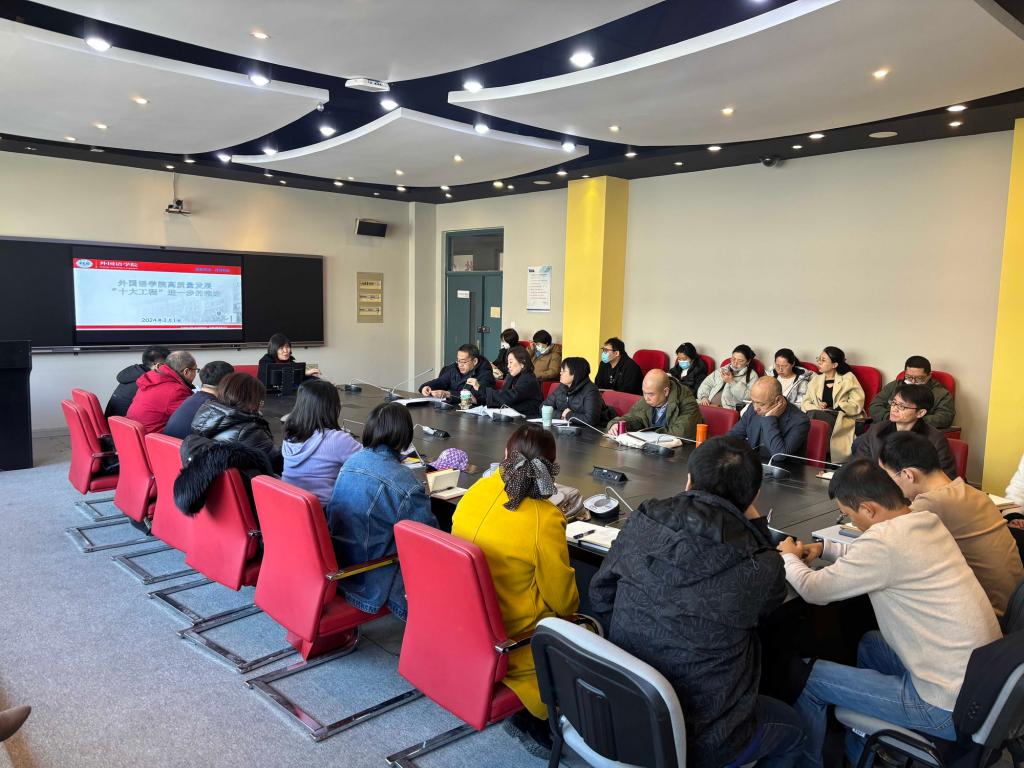 院长冀小婷对“爱我外院,兴院有我”高质量发展“十大工程”进行解读,梳理取得的成绩和本年度进一步推动的工作重点,要求各系部要针对专业建设、课程建设、教师引领和实习基地建设等方面列出工作清单并形成工作计划,带领本部门的老师逐项落实。