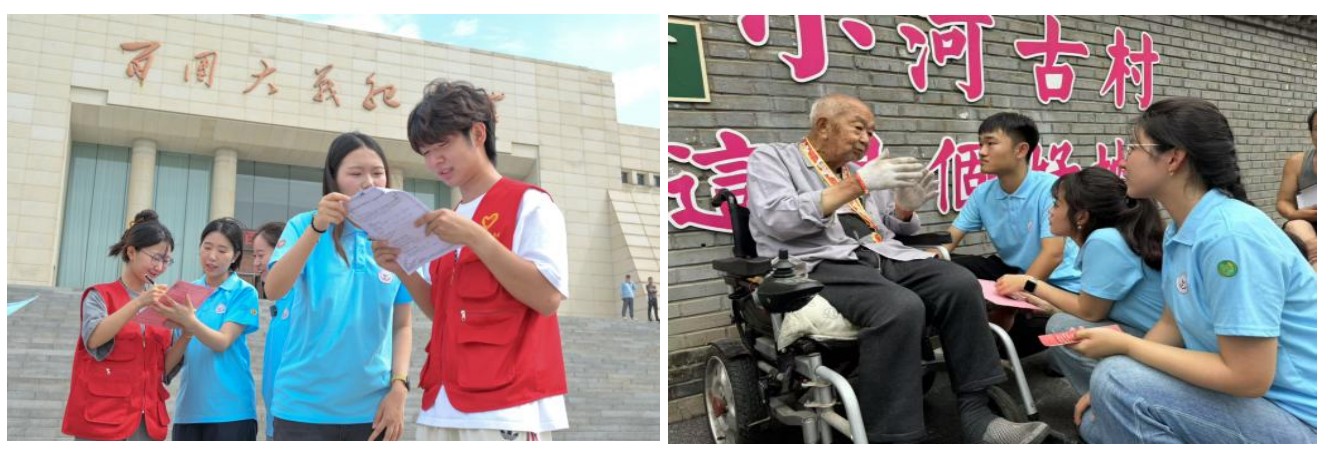 以实践为契机,实践队与段南沟社区签署了校地共建协议,联合建设“红色宣讲员”志愿服务机制及大学生实践基地。同步推进的深度调研覆盖全域,在百团大战纪念馆收集100份问卷剖析资源利用现状;走访亲历解放战争的97岁老兵窦喜祥,记录珍贵口述史料,与村干部专题研讨古建保护与客流调控难题。实践队力求通过扎实的研究形成高质量调研报告,并将5个方面的15条意见建议反馈到阳泉“市长信箱”,为进一步开发当地珍贵的抗战遗址资源提供大学生视角的学理依据和切实可行的对策建议。