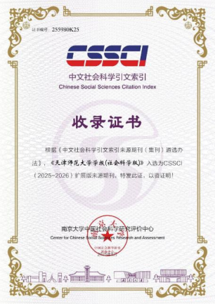 《心理与行为研究》入选为CSSCI(2025-2026)来源期刊;