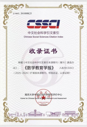 《数学教育学报》入选为CSSCI(2025-2026)扩展版来源期刊。