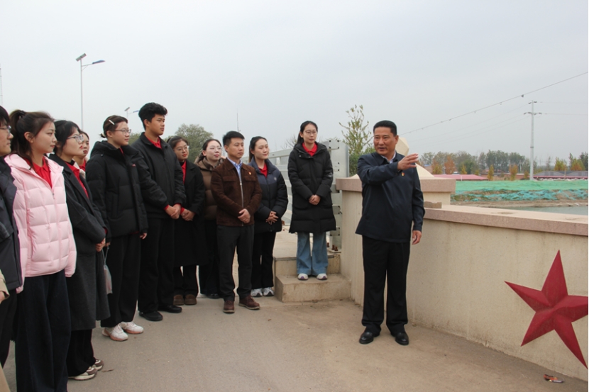 “大伙儿看对岸,那就是正在升级的堤防和泵站,防洪标准提到了50年一遇!”在横跨子牙河的桥梁上,第六埠村党委副书记倪国志指着远处的水利设施,向师生们介绍着。他从习近平总书记调研后的村庄变化讲起,用一个个鲜活事例,生动诠释了党的二十届四中全会精神在基层落地生根的生动实践。同学们边听边记,不时提问。望着眼前加固一新的堤防,一位同学若有所思地说道:“以前在课本上学到‘统筹发展和安全’,总觉得有点抽象。今天站在大堤上,看着这些实实在在的工程,才真正体会到这句话千钧之重的意义”。