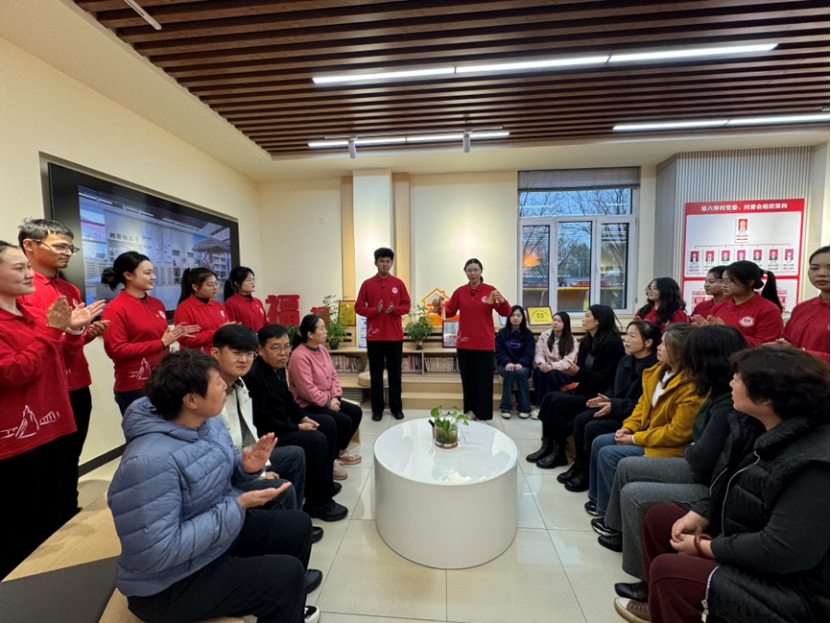 创富工坊里,学生理论宣讲团成员惠觜薇同学将印有党的二十届四中全会金句的书签分发给村民,并逐句讲解:“‘坚持人民至上’就是让发展成果惠及百姓,‘扎实推进乡村振兴’就是要让农村更美、农民更富。”她拿起书签上的“农业农村现代化是国家现代化的基础”,结合工坊的特色产品说:“这就是咱们乡村振兴的‘金钥匙’,政策会越来越支持咱们创业增收。”村民们翻看着精致的书签,连连称赞:“这形式好,把大道理讲到了我们心坎上!”“竹板响,声震天,党的二十届四中全会精神传;金秋十月宏图展,‘十五五’规划启新元……”马浚皓、储珍妮同学用自编自导的天津快板生动演绎了党的二十届四中全会精神,引来了阵阵掌声和欢笑。宣讲团成员刘淇同学在表演后与乡亲们交流:“咱们种地、搞养殖,要依靠科技、注重质量、创建品牌,让农产品变成抢手货,卖出好价钱。”把农业农村现代化的政策,变成了乡亲们听得懂、用得上的家常话。