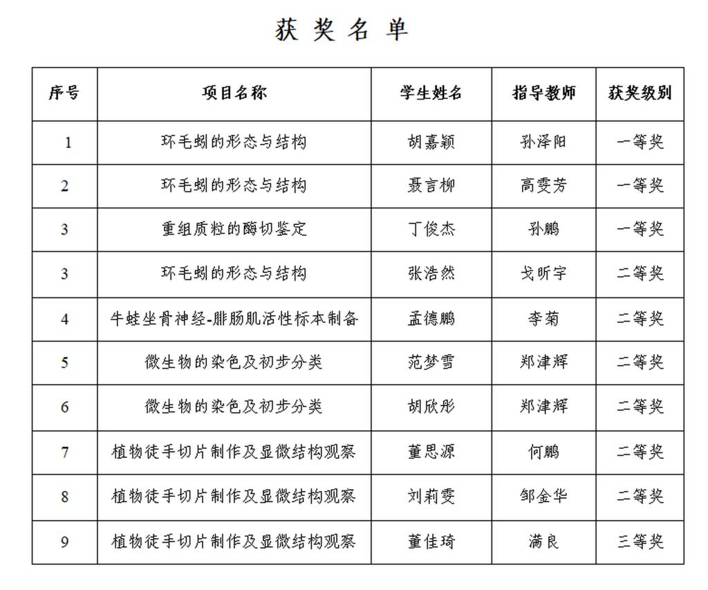 生命科学学院历来将此项赛事作为检验本科实践教学成效的重要抓手,多年来持续完善备赛机制:从赛前的“赛制深度解读”“个性化培训方案制定”,到赛中的“临场心理疏导”“实时技术支持”,再到赛后的“经验总结与教学反哺”,形成了一套闭环式的赛事保障与教学提升体系。
