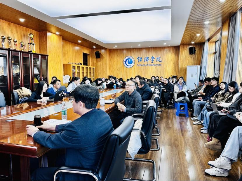 本站讯(通讯员 薛涵 汪雨雨)11月19日,由贝博智库发展研究院与经济学院联合主办的“高端智库讲堂”在兴文楼A324举行。南开大学经济与社会发展研究院教授、博士生导师,南开大学京津冀协同发展研究院秘书长张贵应邀作专题报告。来自经济学院、管理学院、法学院、政治与行政学院、美术与设计学院、新闻传播学院、地理学部、电子与通信工程学院等单位的50余名师生参加讲座。