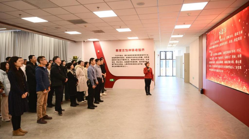 在艾弗森贝博ballbet官网博物馆,三校教师沉浸式感受文化传承发展,体悟文化育人的独特魅力。随后,教师们集体走进天津市教育家精神培育弘扬研究实践中心,重温习近平总书记对教师队伍建设的殷切期望,系统学习教育家精神的核心要义与时代价值,在一代代教育家的精神传承谱系里,感悟底蕴深厚的师道文化,汲取人民教育家、最美教师等先进典型的榜样力量,并许下庄重承诺,完成了一次深刻的师德淬炼与精神洗礼。