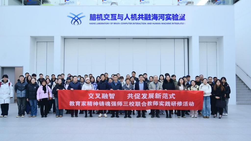 三校教师前往脑机交互与人机共融海河实验室开展实践交流。在实验室科研人员带领下,教师们深入了解实验室在脑机接口技术、人机共融等领域的科研成果和创新应用场景。该实验室依托天津大学组建,以两院院士领衔科研团队,聚焦脑机交互、人机共融领域全链条研发,在新型神经信号感知、仿生组织工程神经等方向实现关键技术突破,形成自主知识产权集群与产业化应用示范。通过交流,教师们真切感受到前沿研究服务国家重大战略需求的强劲动能,领略到产教研深度融合的创新范式与实践价值,也对科研创新如何对接产业需求、赋能社会发展有了全新的思考。