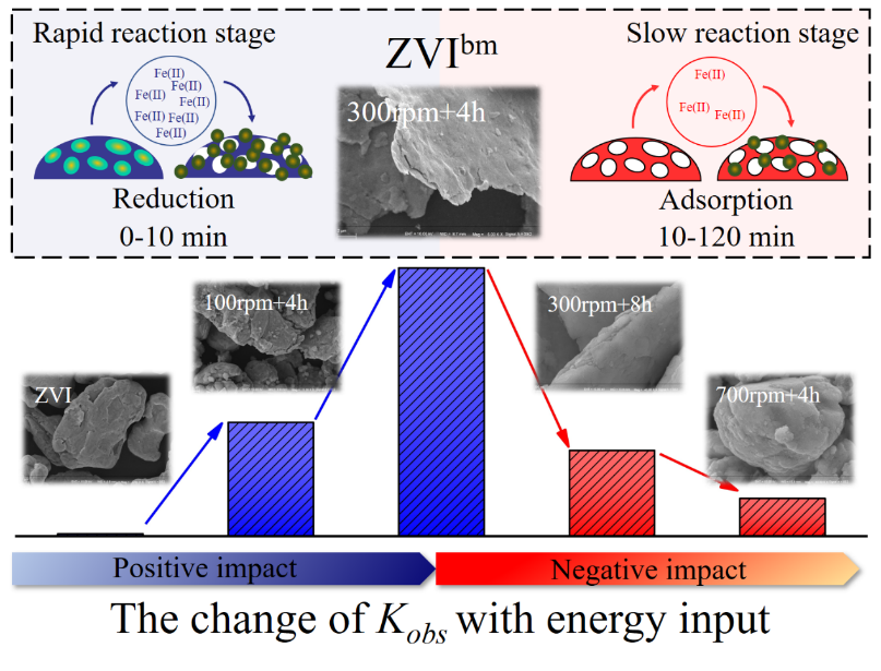 球磨法在克服钝化问题提高零价铁(ZVI)去污效率方面具有显著的应用前景。目前,球磨零价铁(ZVIbm)在污染消除方面的重点研究较少。ZVIbm的去除性能经常被用作参考,以突出其他球磨处理的强化效果。然而,球磨过程中工艺参数和过程控制剂(PCA)对ZVIbm反应性的间接影响却被严重忽视。了解能量输入的影响对于ZVIbm的工业化大规模生产及其在环境污染修复中的应用至关重要。
