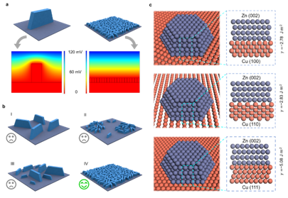 受中国上古神话——“大禹治水”中“堵不如疏”思想的启发,抑制枝晶的自我放大效应,合理地调节它们的生长,而不是完全阻碍它们的形成,可能是提高金属阳极稳定性的一种更为有利的动力学途径。具体而言,如果电极表面存在大量微小的、大小相似的、均匀分布的枝晶,其充放电时周围电场不会明显变化。同时,大量枝晶的生长相互竞争,可以有效避免单个枝晶的异常长大。因此,金属的重复电镀/剥离只会导致树枝状物的均匀长大和缩小,而非形成有害的大枝晶。