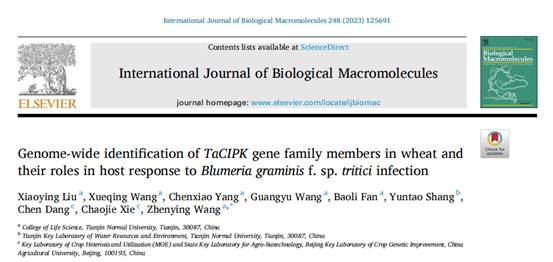 生命科学学院刘晓颖高级实验师和王振英教授在International Journal of Biological Macromolecules发表论文“Genome-wide identification of TaCIPK gene family members in wheat and their roles in host response to Blumeria graminis f. sp. tritici infection”,该工作在全基因组范围鉴定了小麦CIPK基因家族,探究了TaCIPK15-4A抵抗小麦白粉菌侵染的反应机制,为深入了解TaCIPK家族的生物学功能及抗白粉病分子育种提供依据。