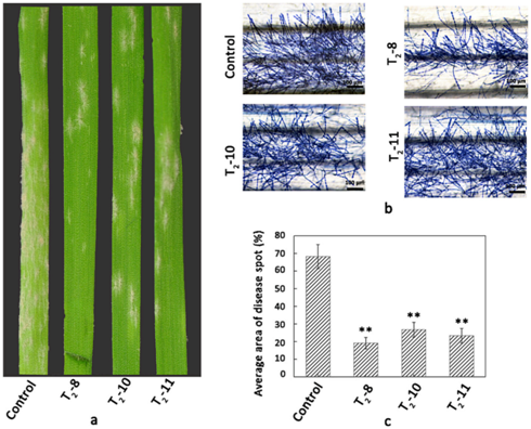 图1 过表达TaCIPK15-4A基因提高小麦对白粉菌E09的抗性