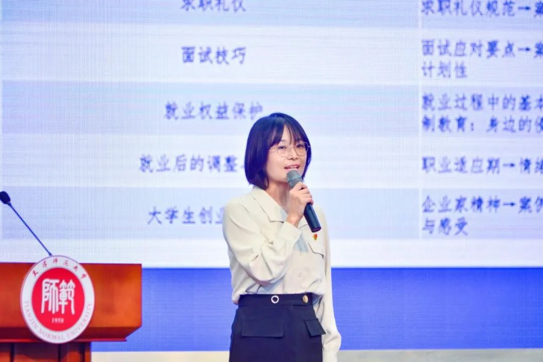 2020年底,贾淑颖调整至就业指导教学科进行工作。面对新的挑战,她迎难而上,坚持问题导向,创新工作方法。一方面她主动熟悉大学生就业新政策,向学生介绍多种就业模式;另一方面广泛开展走访调研,分析在校生情况,做出详细可行的方案,将“生涯教育”纳入四年学业。除此之外,她坚持以生为本,积极打造“第二课堂”丰富教学形式和内容,开展大学生就业观涵养及就业能力提升工程系列讲座、户外生涯体验营等活动,为学生们提供探索自我,规划未来的良好平台。