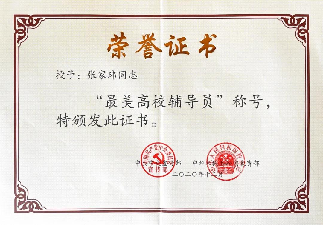 近日,中宣部、教育部联合发布2020年“最美高校辅导员”名单及先进事迹,贝博张家玮老师获得此项殊荣。